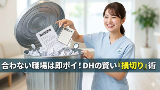 仕事 「合わない」は早めに見極めるのが正解!DHのための戦略的「損切り」のススメ。試用期間をフル活用せよ 2026-03-16 なかちゃん みんな今日もお疲れ様です! ぶっちゃけ「職場ガチャ」外したかも…って思ってない? 「石の上にも三年」なんて言葉があるけど、歯科業 …
